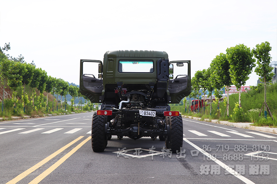 采用玉柴YC6Mk340-33发动机,手动12档,分时六驱,带高低两档。钢板弹簧9/10片。油箱容积300L。