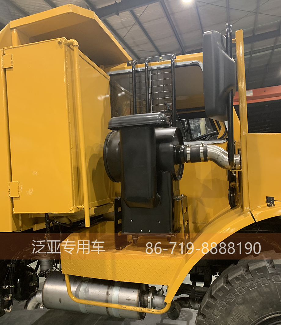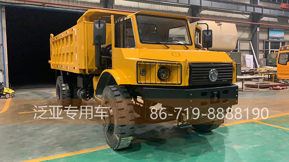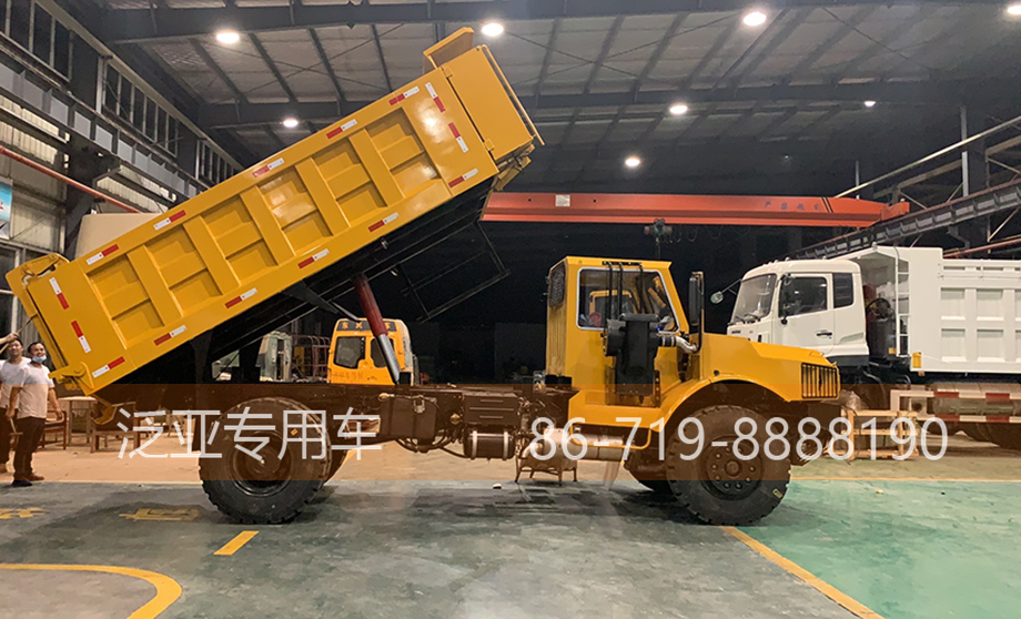越野底盘:断气刹;不仅配备有降温水箱还带有暖气。为使驾驶者在山洞不收寒气的弥漫影响行驶的安全,配带有14底板空调暖风三通连接倒车镜管子内;容量为230L的油箱,保证全天畅通工作;10/13+9的钢板片数,且板簧宽10公分厚20公分,让底盘承受力增强。货箱尺寸:4200mmX2500mmX1100mm,自卸双顶。单开整体田字格的货箱设计,14mm厚的单开货箱后门;翻转支座,锁链钩加强型;车箱内角封斜面,宽尾底座;自卸栏板向前遮盖驾驶室。