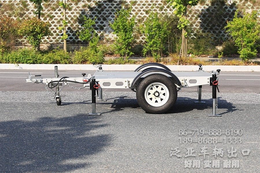 拖车底盘具有经久耐用的特点。采用高弹性实心胎,能增强拖车承载能力和使用寿命,减轻行驶过程中车辆颠簸对货物造成的损伤。