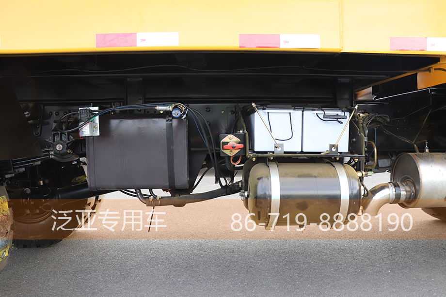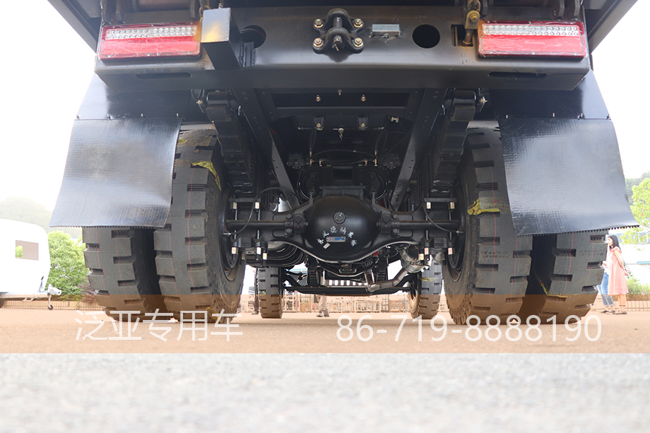 底盘上前后悬分别安装加强型钢板。前10片带减震器、后13+9片钢板。