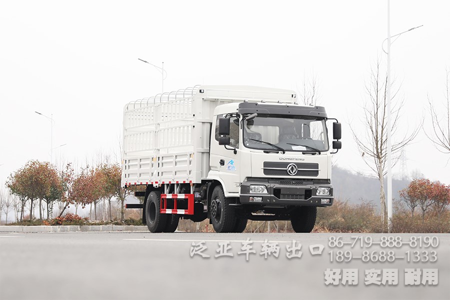 东风210马力4×2仓栏运输车_5.2米8吨中型仓栅车_高栏鹅颈式物流货运