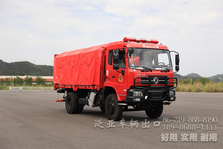 东风4x2大马力越野卡车消防救援车_平头排半驾驶室越野运输车