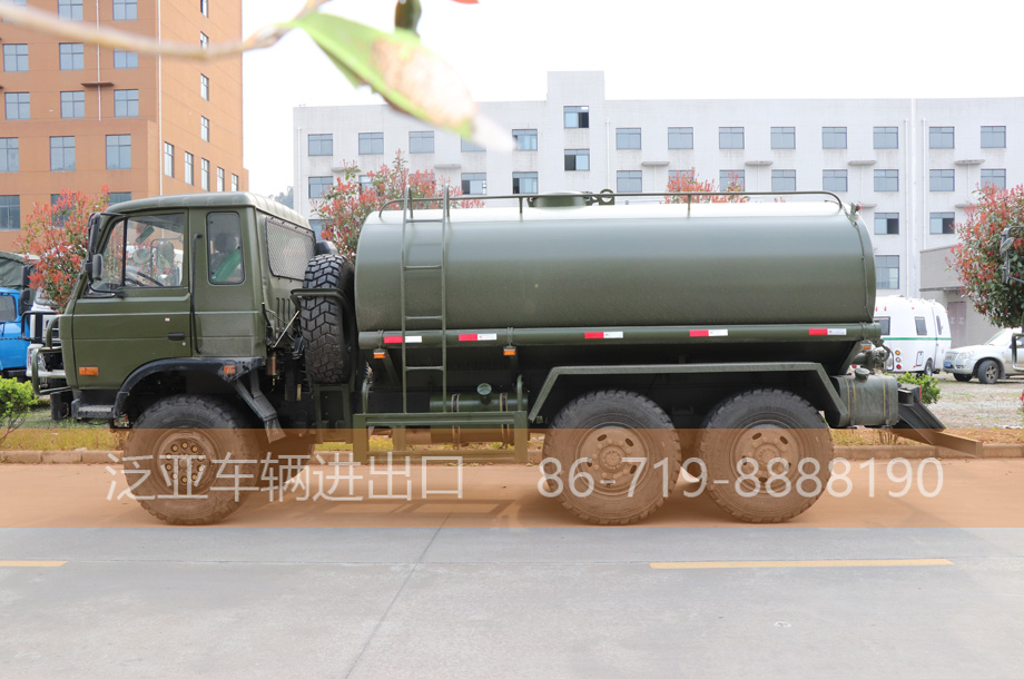 | 上装配置 | 后无平台,自流阀及消防接头各一个,水管与罐体通长2根。罐内玻璃钢内涂,左后方自吸自排。罐体厚4mm |