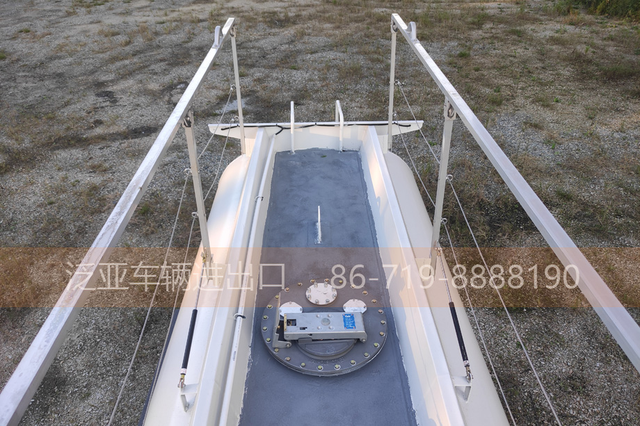 罐体采用碳钢材质,内有1道4mm厚阻浪板。罐体底部1只铝合金DN100气动紧急切断阀,配气控组合开关、紧急切断开关、未关闭语音提醒装置。后方带有爬梯,罐顶1只铝合金欧标人孔盖,左右两侧带铝合金举升护栏。罐体前部带加油操作仓,舱内装有加油机、加油管、加油枪及防爆照明灯。带有种防火防爆装置(导静电带、防火罩、静电接地器等)