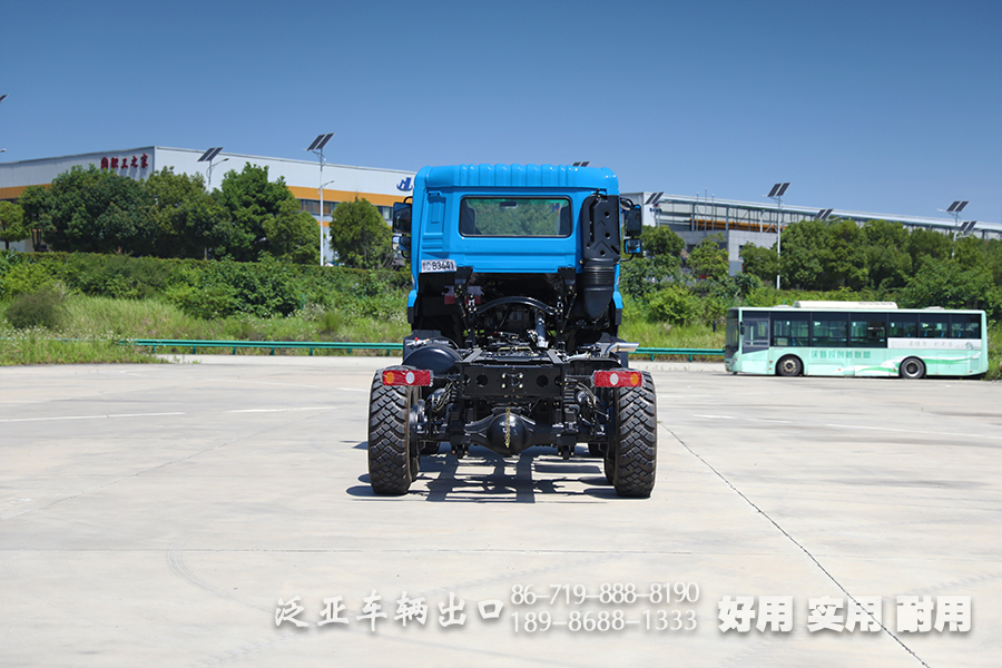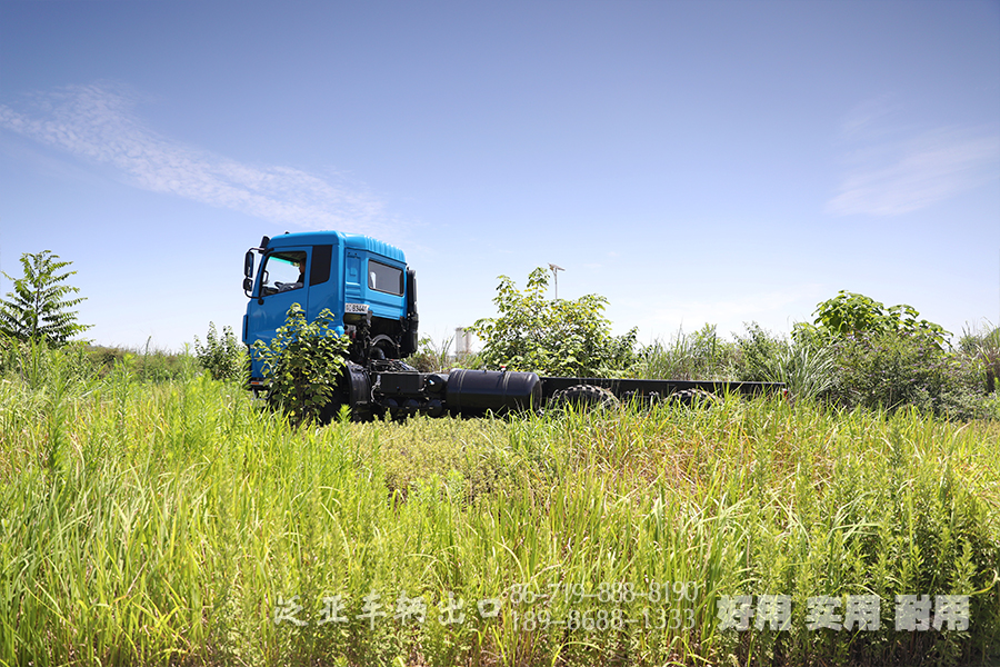 6x6东风重型专用车底盘,总质量可达25吨,六轮驱动使得它可以在山路、森林等地区行驶,适合改装成载货卡车、自卸汽车、混凝土搅拌车等专用重型车。