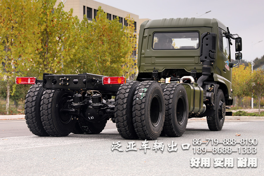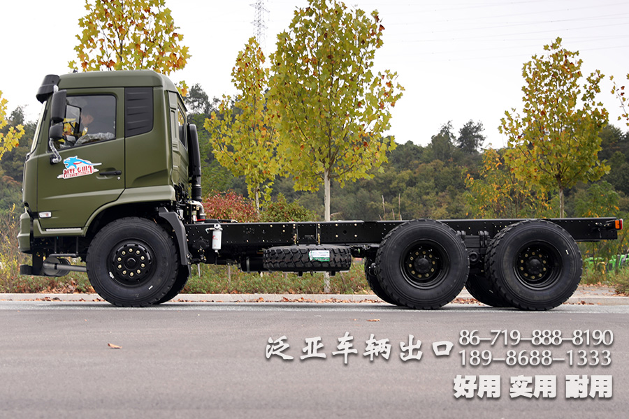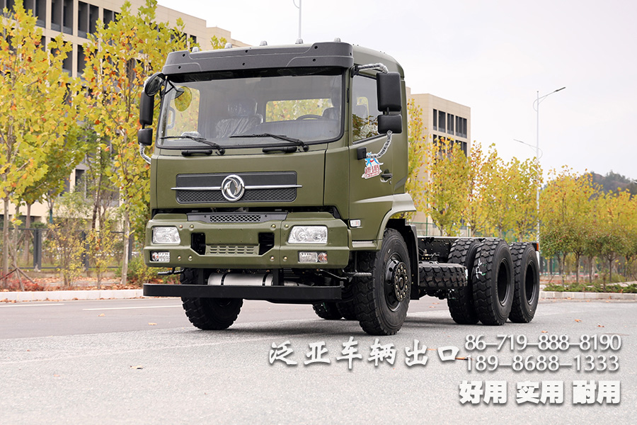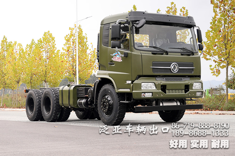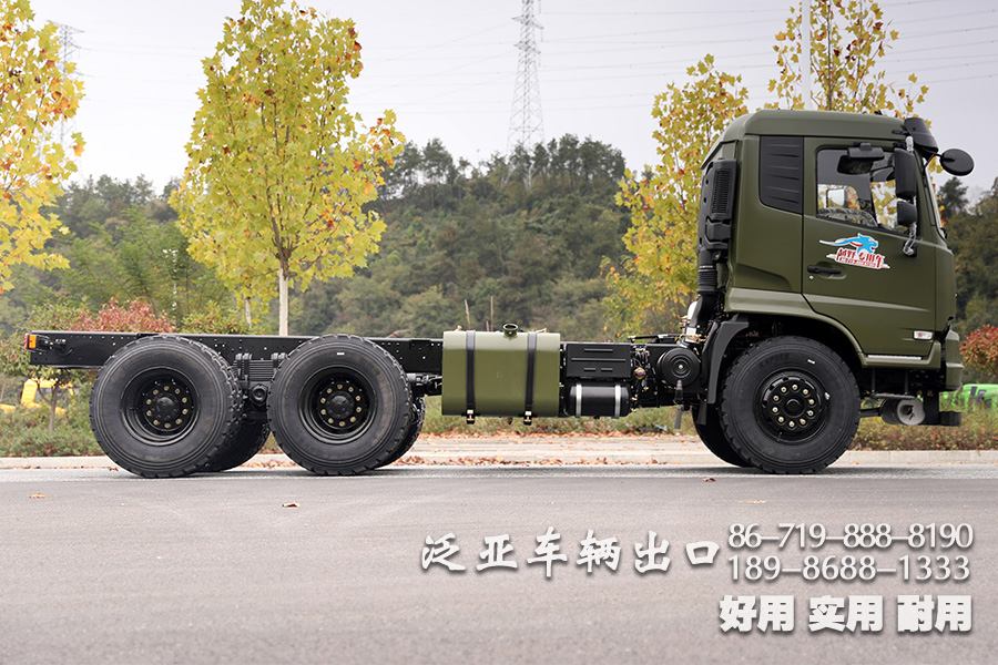 东风6x4越野油罐车底盘,采用了东风排半驾驶室,宽广舒适,搭配大马力的发动机和八档变速箱使得该底盘可改装性很高,可适配各种车箱,好用耐用实用.