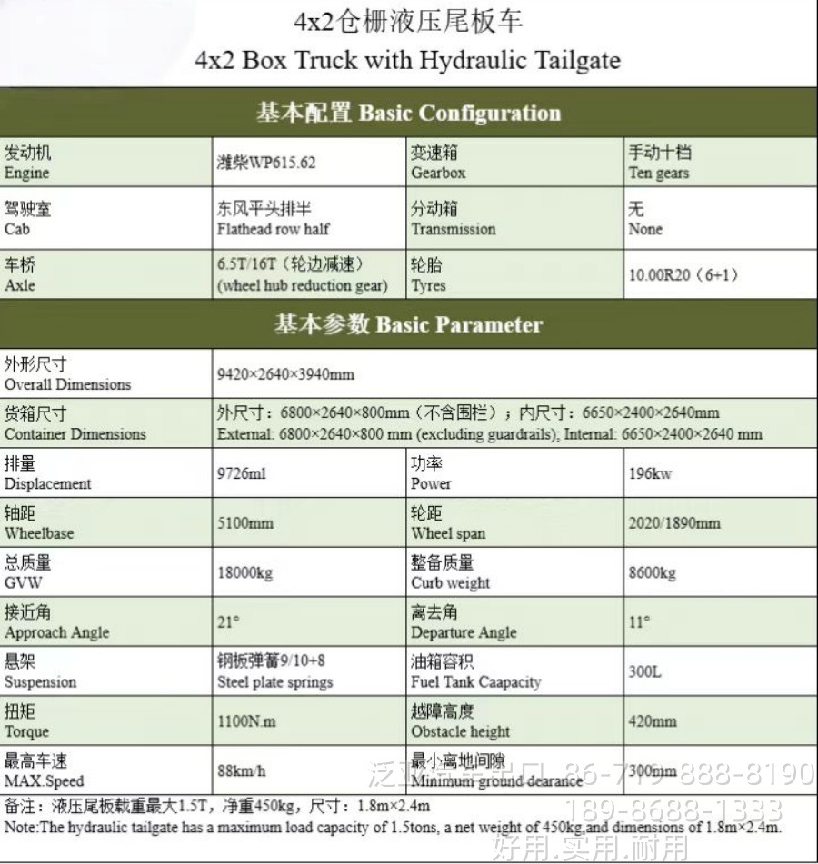 东风4*2液压尾板仓栏车