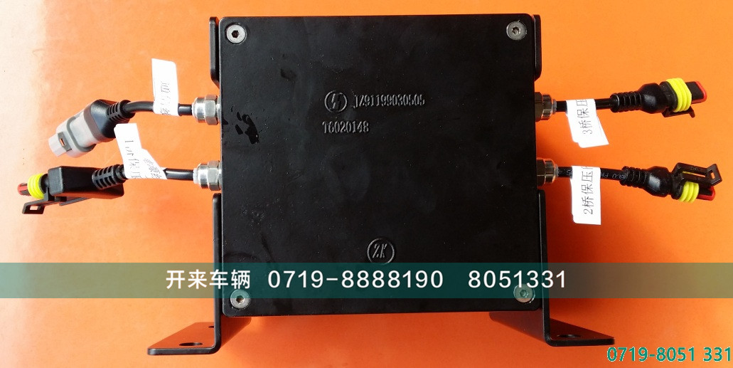 2.1.2控制器(阀)总成: 安装在车架靠近储气筒处,通过线束与控制面板连接,执行控制面板发出的指令,并将执行结果发送回控制面板显示。 |
